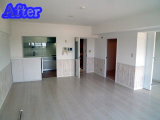 鉄筋コンクリートマンション3SLDKを広いリビングの2SLDKに変更。